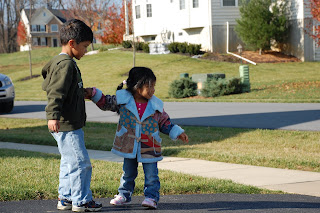 I just love these pictures of John with Grace. They are from before Thanksgiving and before she really started walking everywhere on her own. It's great to have such a helpful big brother...
